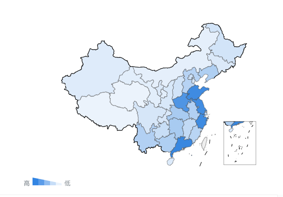 六、地域分布情况:华东、华南、华中为核心区域,用户集中度较高