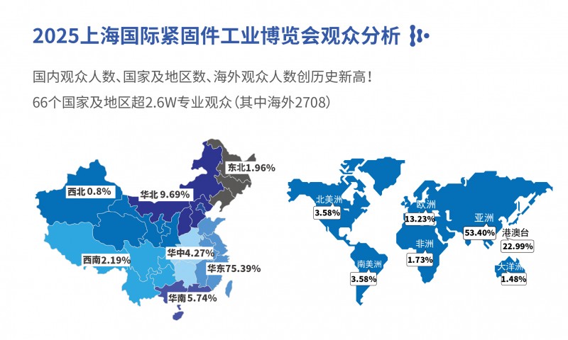 作为全球紧固件产业的核心紧固件展,上海国际紧固件展串联起了整个产业链,紧扣终端,注重出口。展览展品覆盖紧固件原辅材料、专业设备、模具及耗品、设计技术、检测实验、电商平台、行业服务、信息咨询、标准紧固件、专用紧固件、冲压件等产业链各个环节,对标全球紧固件行业市场与终端领域;每年有超66个国家和地区的知名采购商以及采购团体前来,涉及汽车、船舶、电子/电器、机械/设备、航空/航天界、建筑、轨道/交通等终端行业。