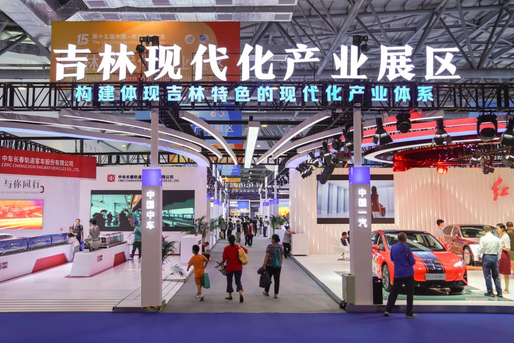 参观者在第十五届中国—东北亚博览会吉林现代化产业展区参观(8月28日摄)。新华社记者 许畅 摄