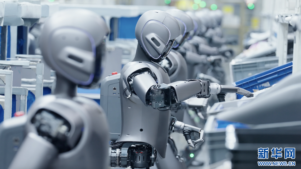 数十台人形机器人在工厂“实训”。