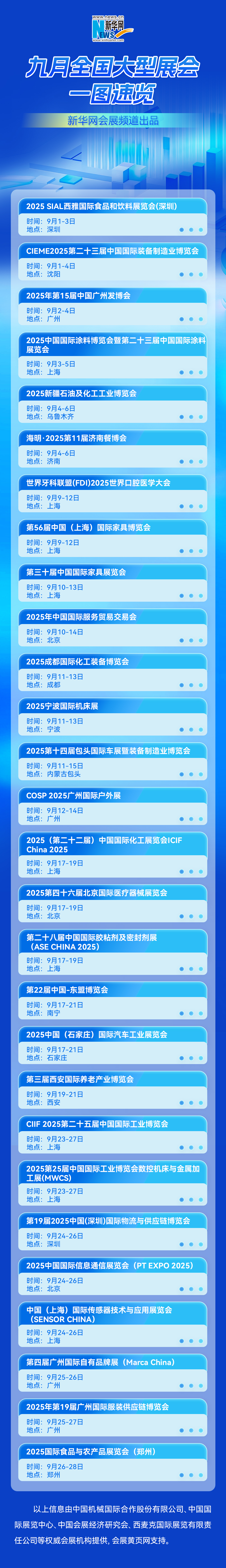 会展日历|一图速览九月全国大型展会
