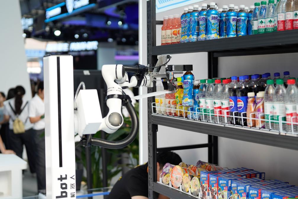 9月11日,机器人在从货架上取送货物。