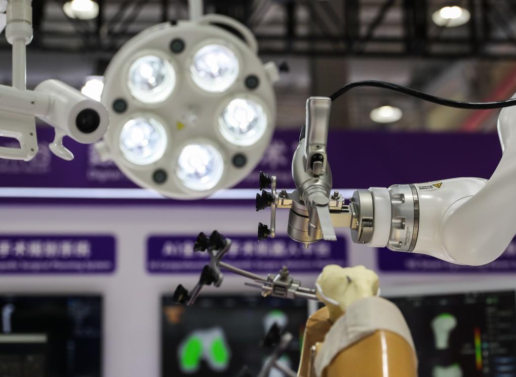 这是9月10日在长木谷医疗科技展区拍摄的数智骨科手术室展示。
