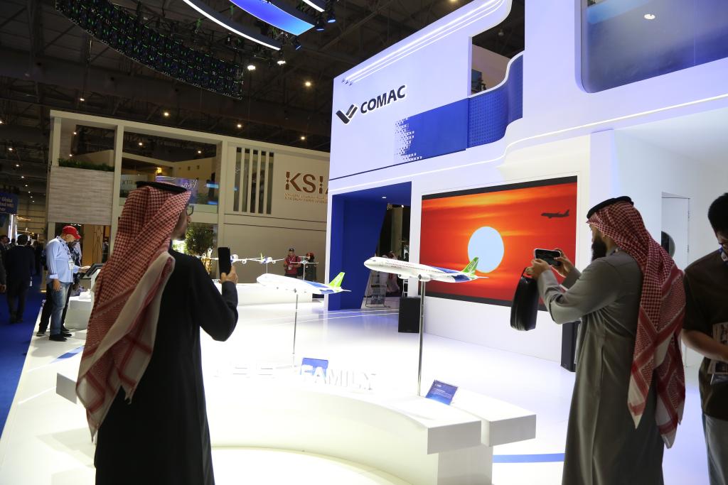 11月17日,在阿联酋迪拜,观众在2025迪拜航空展上参观中国商飞展台。