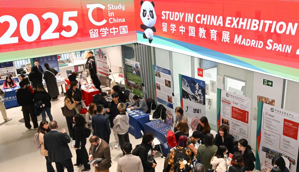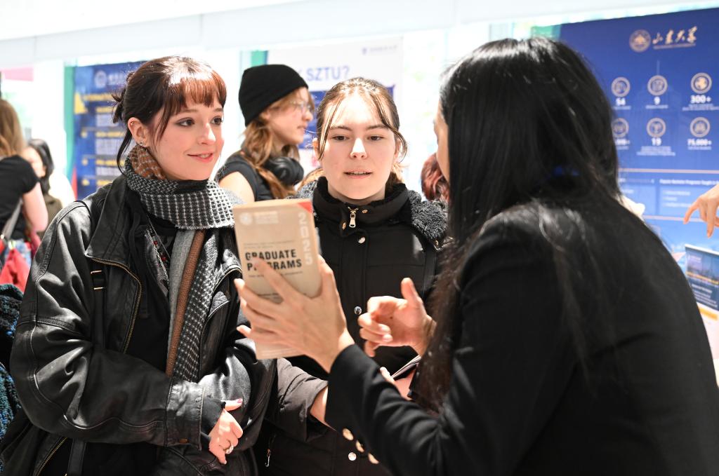 当日,2025年西班牙“留学中国”教育展在马德里举办, 山东大学、东南大学、中央美术学院等十余所高校和研究机构参展,向西班牙院校和观展民众介绍相关留学政策、服务体系、特色专业等,为有意愿赴华交流学习的西班牙学生提供面对面咨询。