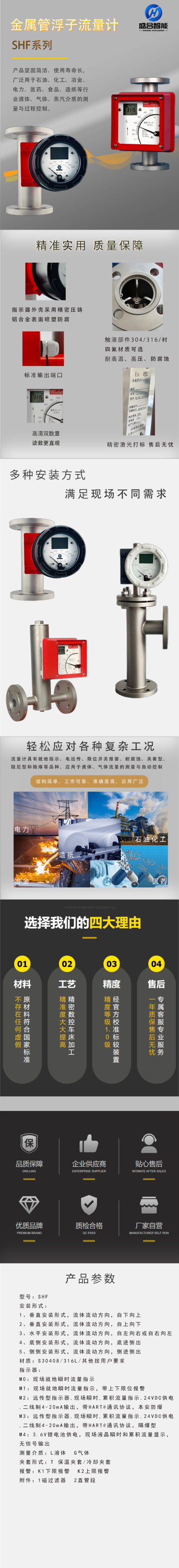 shf金属管浮子流量计是全金属结构设计,耐高温高压、防腐;智能型指示器,模块化设计,无磁滞后;具有掉电保护、数据恢复及错误自诊断功能;sh金属管浮子流量计hart型指示器,可进行参数组态和现场调整;与pc机串口,实现现场对仪表进行标定;瞬时流量、累积流量显示。产品坚固简洁、使用寿命长,广泛用于石油、化工、冶金、电力、医药、食品、造纸等行业液体、气体、蒸汽介质的测量与过程控制。